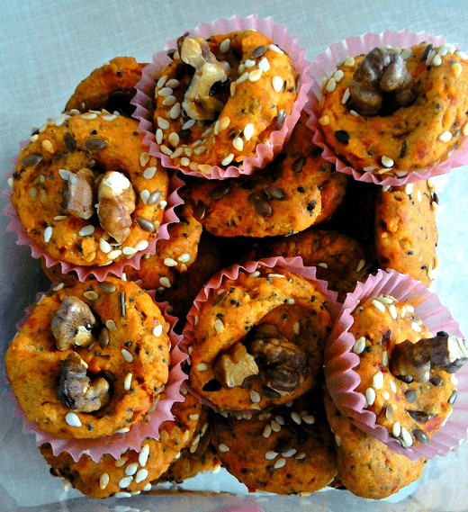 Integralni krekeri „upakovani“ malo drugačije. Od testa napravljena kuglica, stavljena u paprinu korpicu, u koju je utisnut komad oraha. Savetujem da za predstojeće praznike, krekere stavljate u crvene i zelene korpice: