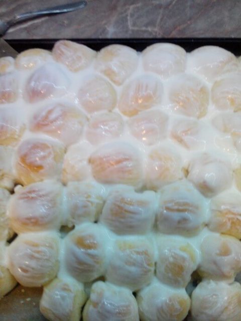- Sve krajeve testa saviti ka sredini,oblikovati malu lopticu i redjati u pleh sa blagim razmakom, sa spojenim krajevima na dole. Pustiti da nadodju mantije i peci na 200 C nekih 15-ak minuta. Pred kraj pecenja izvaditi ih iz rerne i premazati jogurtom.