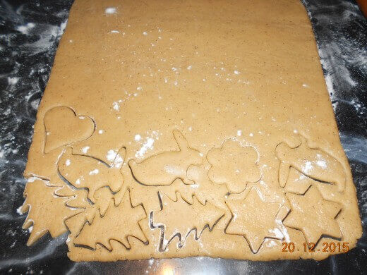 - Razvite testo na debljinu prsta i modlama vadite oblike.
