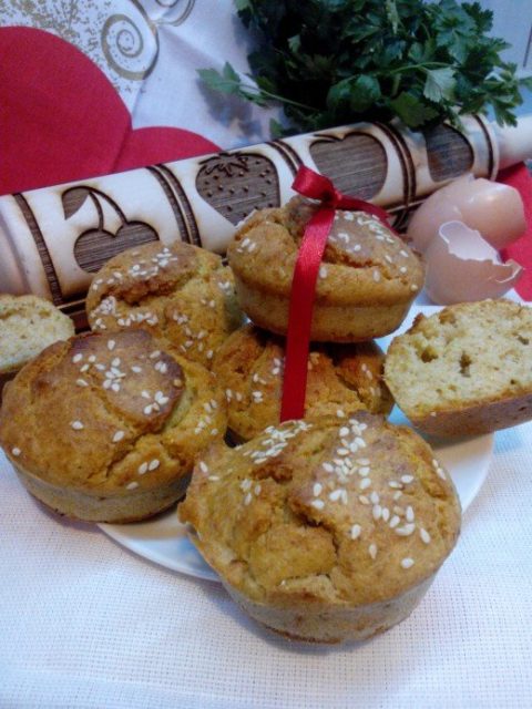 - U odgovarajućoj posudi sipati mleko,vodu,ulje,posoliti,dodati jaja,ulje i sve vrtse brašna pomešanog sa praškom za pecivo.Umutiti varjačom smesu.Nije potrebno mutiti mikserom.Puniti silikonske mafine ovom smesom.Dovoljna je po 1 puna kašika fila.Projice posuti lanenim semenom.Peći na 220 C 15 minuta.
